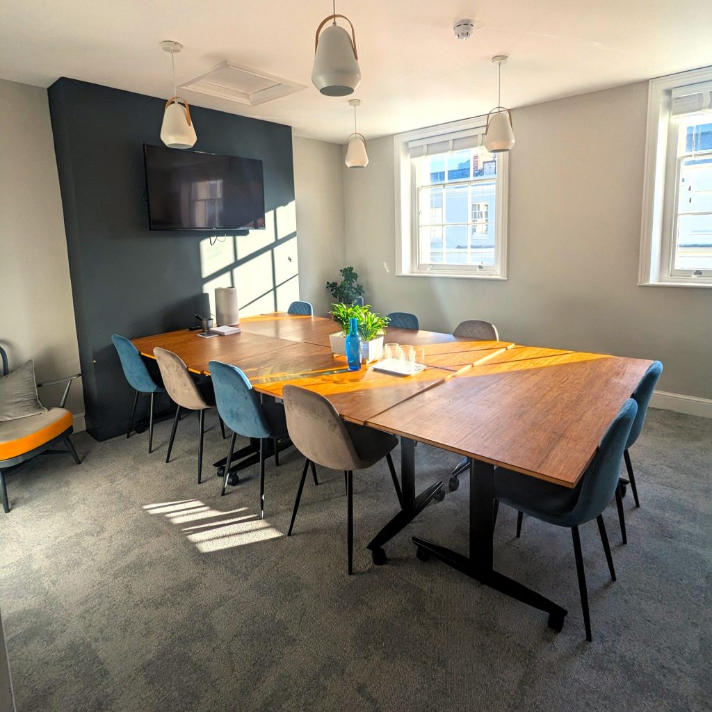 All desks are solid bamboo, equipped with 24″ monitors, and are electronically height adjustable. All desk chairs are the superb ergonomic Herman Miller Sayls.